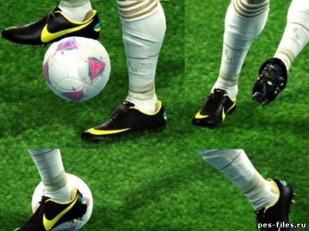 Очередные классные бутсы Меркуриал чёрного цвета с ярко-жёлтой полосой для PES 2012