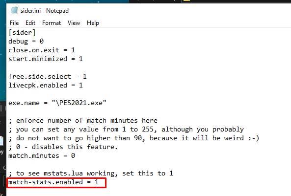 Строку "match-stats.enabled" необходимо включить (значение "1") в конфигурационном файле Sider.