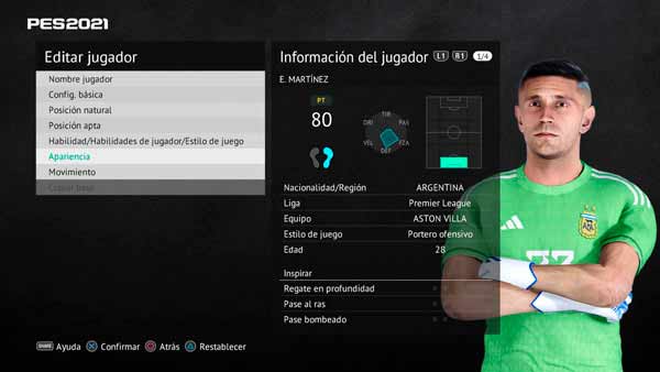 PES 2021 Dibu Martinez v2 and Tattoo by Unknown - мейкер представил новое лицо второй версии и татуировки аргентинского футболиста Эмилиано Мартинеса сезона 2025 для eFootball Pro Evolution Soccer 2021.