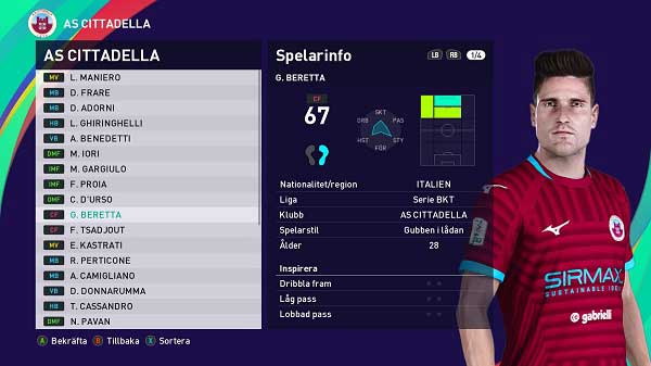 PES 2021 Face Giacomo Beretta - мейкер "Random" представил лицо итальянского футболиста Джа́комо Бере́тта для футбольного симулятора eFootball PES 2021