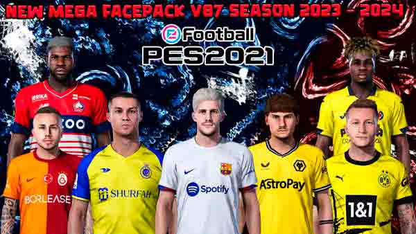 PES 2021 Mega Facepack v87 - большой пакет лиц игроков сезона 2023 восемьдесят седьмой версии в некоторые патчи для футбола eFootball Pro Evolution Soccer 2021.